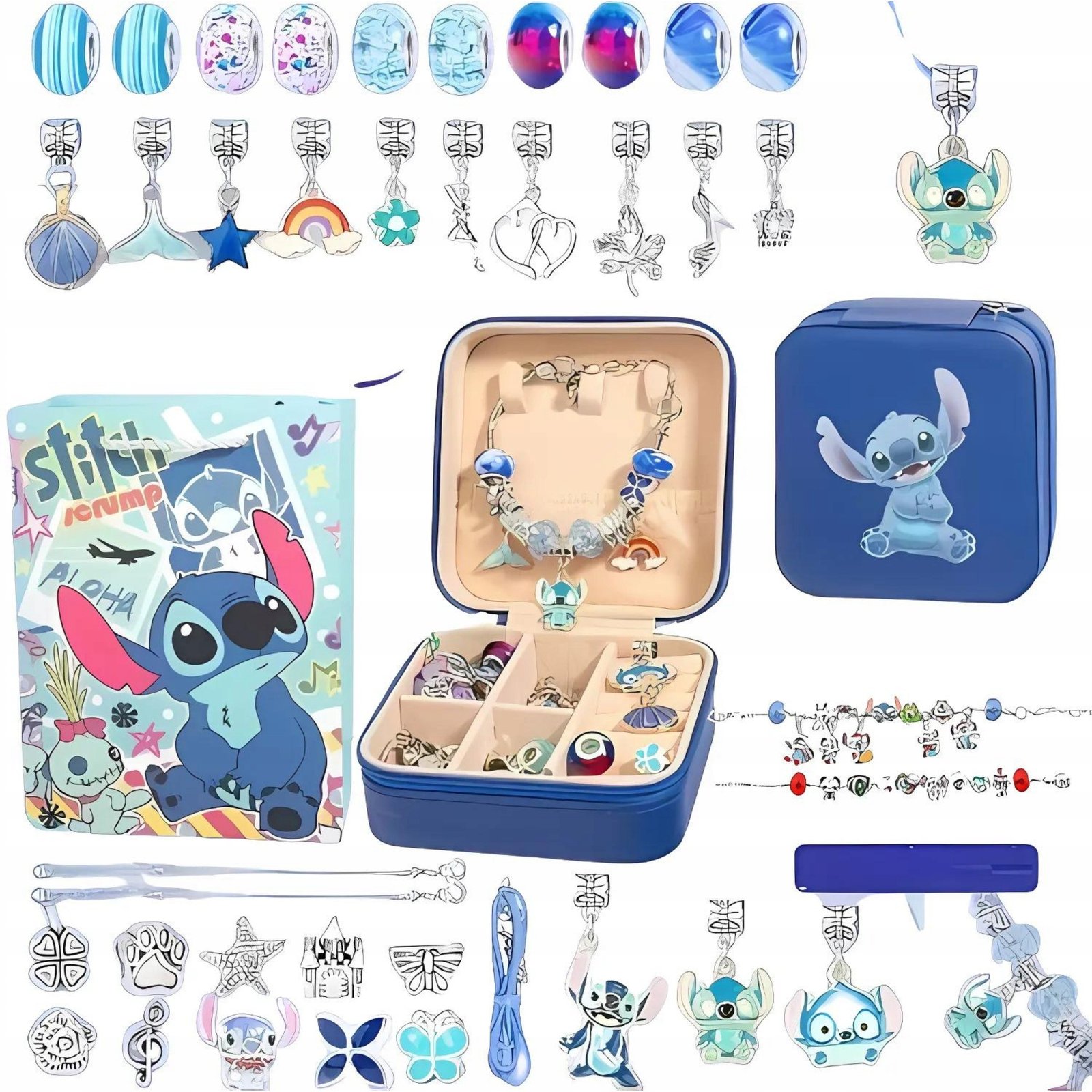 Šis unikalus papuošalų gamybos rinkinys leidžia vaikams įkvėpti gyvybės mėgstamiausiems „Lilo ir Stičo“ personažams. Turėdami 73 detales, jaunieji menininkai gali kurti unikalius kūrinius, derindami karoliukus, pakabukus ir amuletus bet kokia konfigūracija.